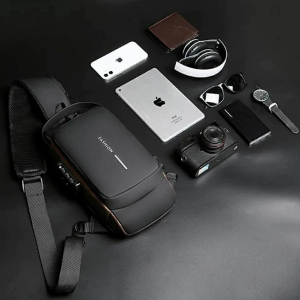 Contém trava com código de 3 números, o que empede que a bolsa seja aberta.