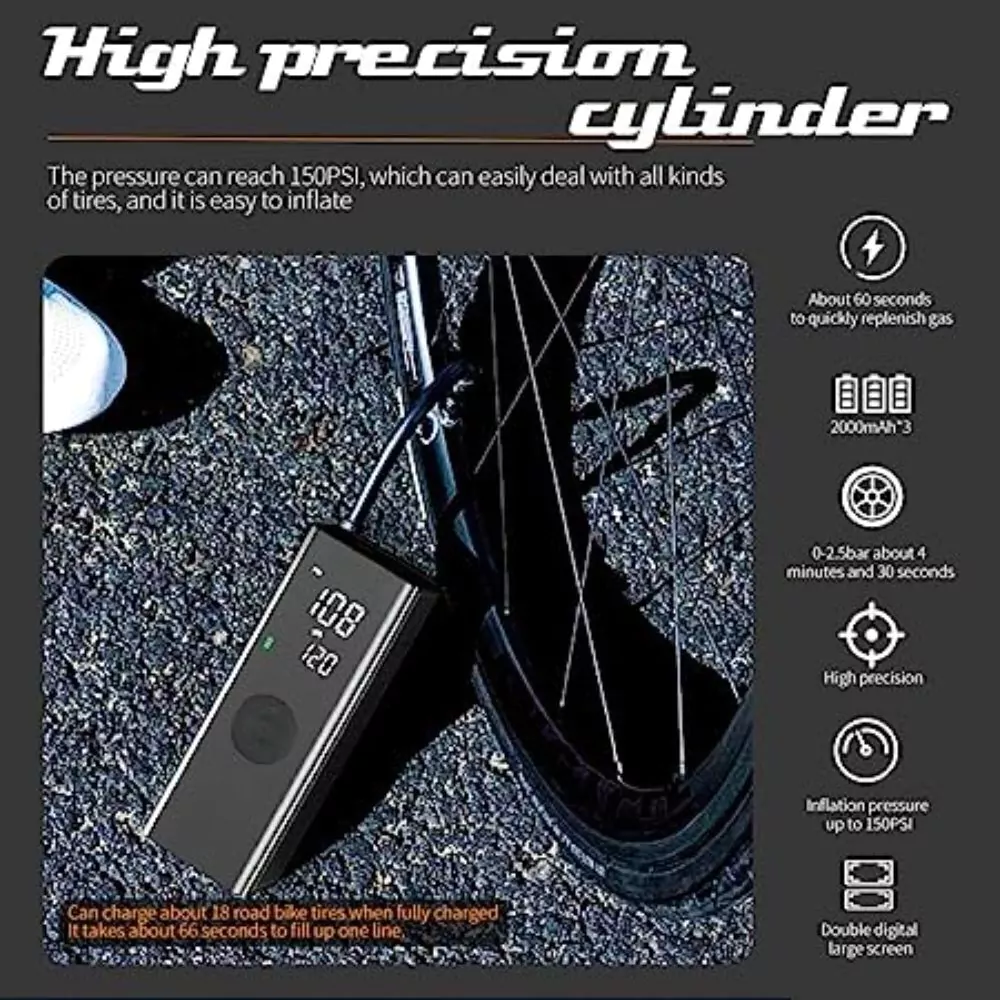 Pressão de ar pre definida padrão: carro2.5BAR, bicicleta45PSI, motocicleta2.4BAR, bola 8PSI