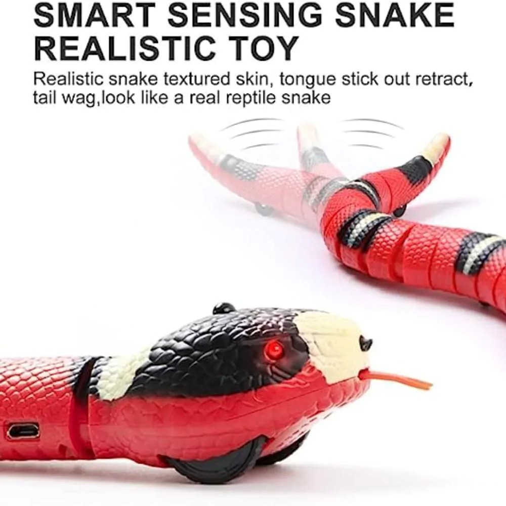Pele texturizada de cobra realista, língua saliente retrátil, cauda que balança, com detecção inteligente.