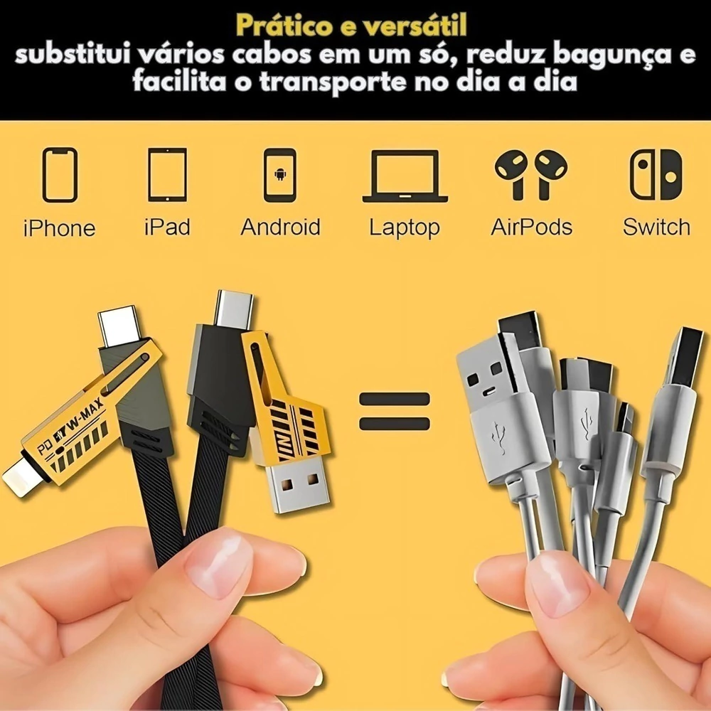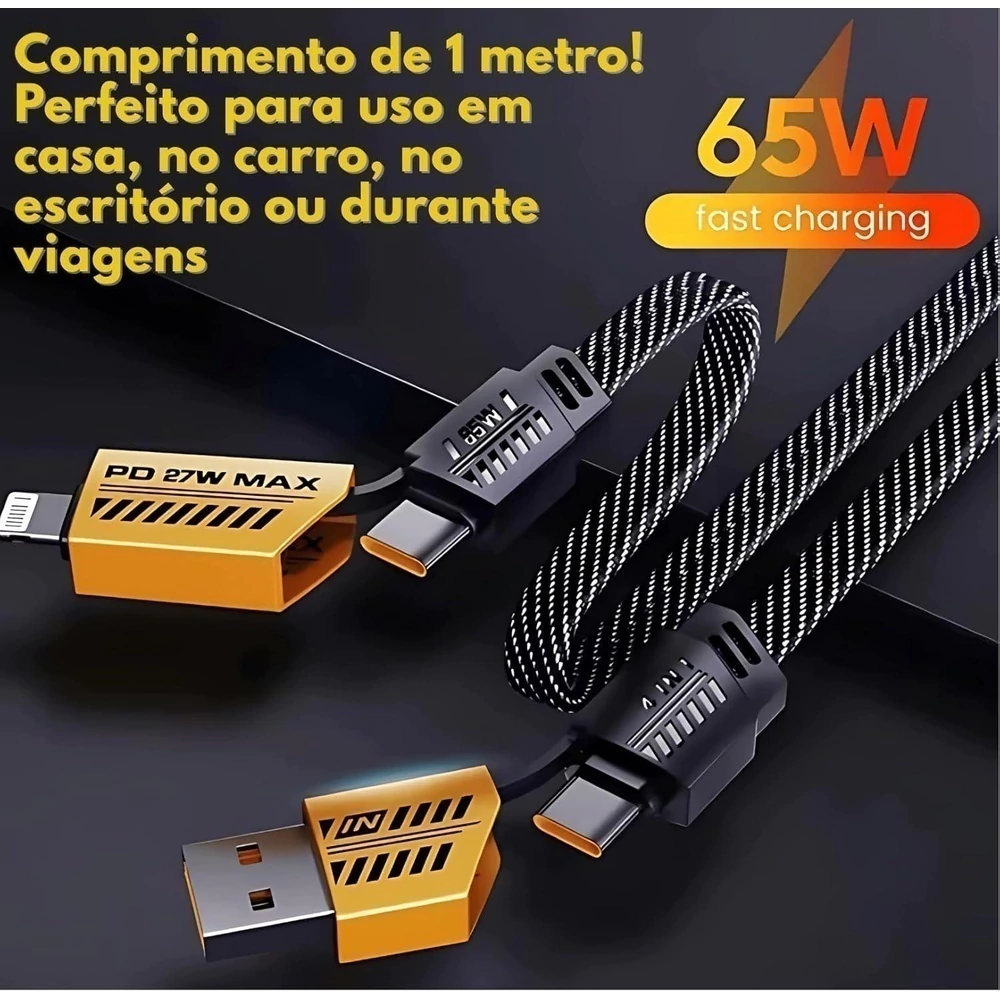 O Cabo 4 em 1 Reforçado 65W Turbo é a solução prática e versátil para quem precisa carregar diferentes dispositivos com rapidez e segurança.