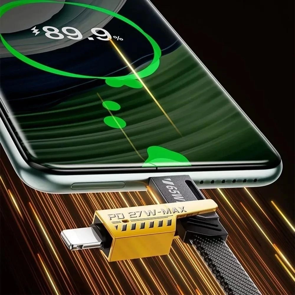 Fabricado com material premium e reforçado, garante alta durabilidade e resistência a dobras, além de suportar carregamento turbo de até 65W, proporcionando eficiência e segurança para o uso diário.