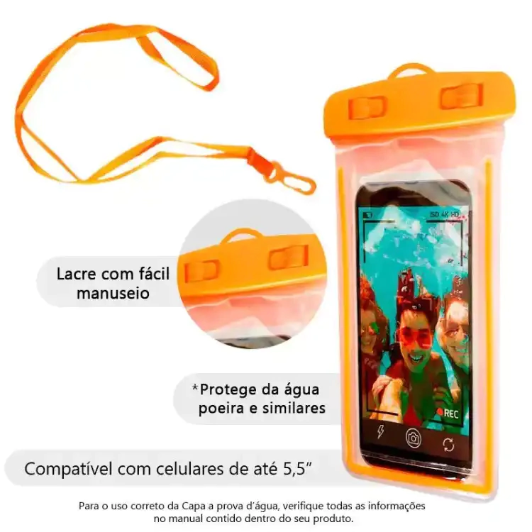 CAPA PROTETORA PARA CELULAR - Utilize a capa para guardar o celular ou qualquer outro objeto que caiba dentro. Pode ser usada em praias, piscinas, clubes, cachoeiras, e diversos outros locais. Oferecendo proteção ao seu celular ou objeto contra a água e sujeira.