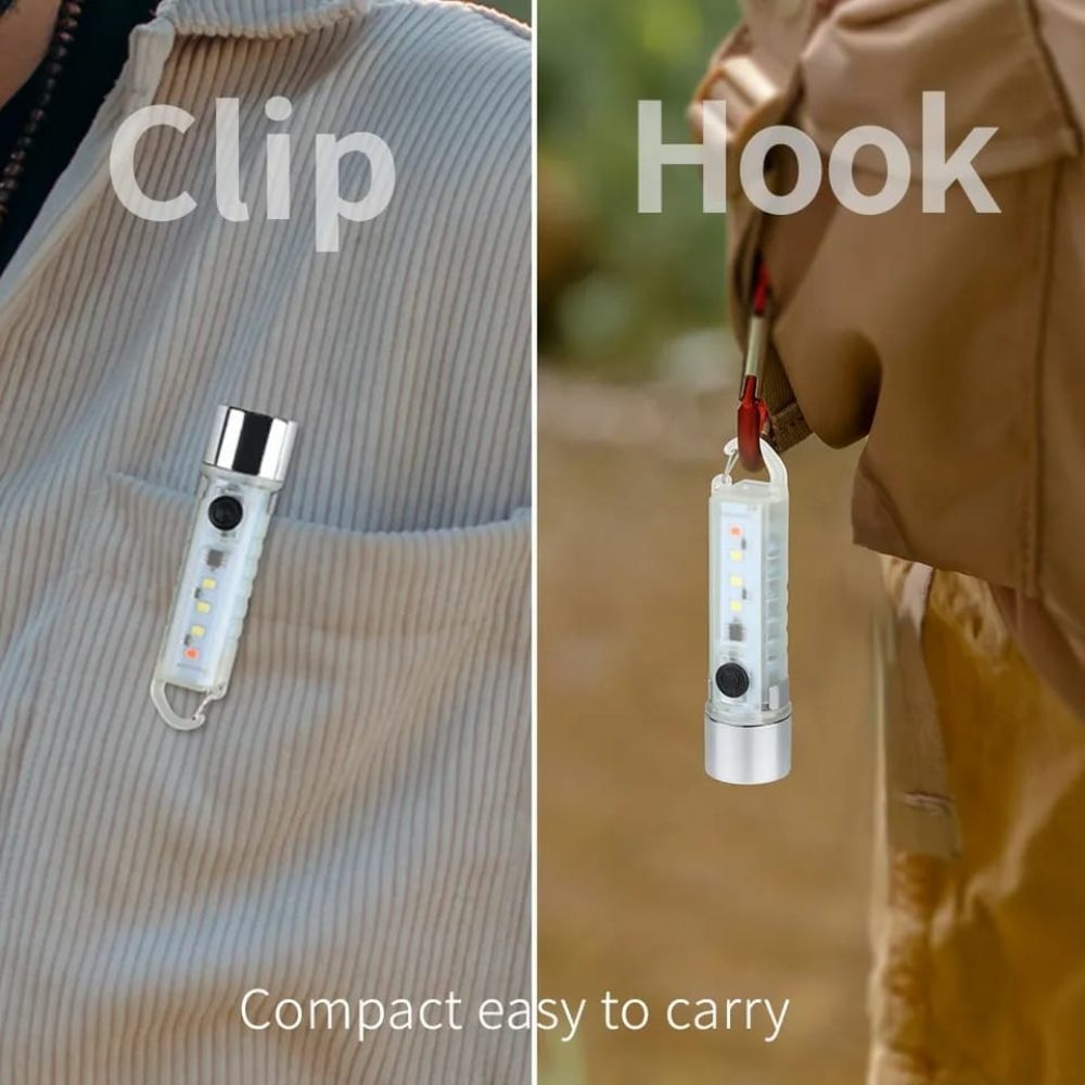 mini chaveiro lanterna de LED tipo C recarregável multi funções.