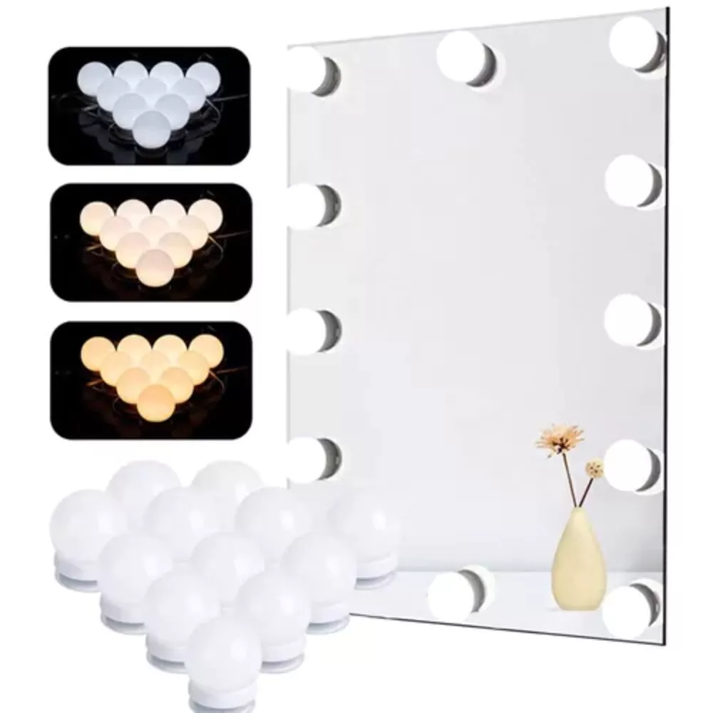 lâmpadas de Led que poderão ser fixadas em seu espelho ou parede sem nenhuma dificuldade, através de fita dupla face.