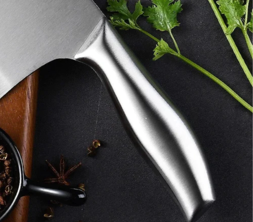 O cutelo possui lâmina de alta qualidade feita de aço inoxidável ou aço carbono, escolhida por sua excepcional resistência, nitidez e resistência à corrosão. A lâmina é cuidadosamente fabricada para fornecer desempenho de corte superior, tornando-a adequada para lidar com ingredientes difíceis e preparação de alimentos pesados.