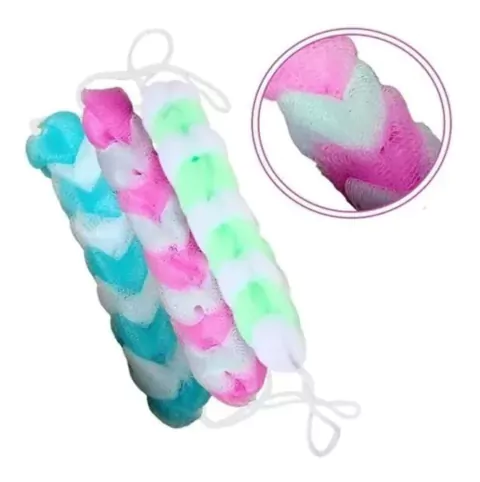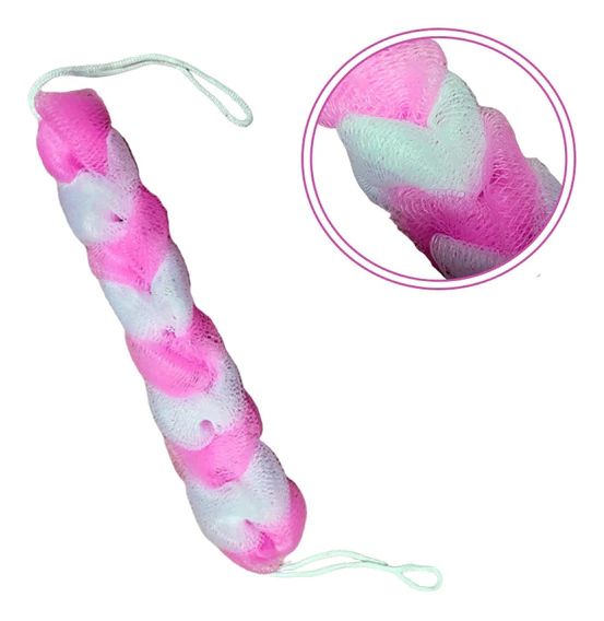 Esponja de banho trançada para costas.Com cordão nas duas extremidades para facilitar na hora do banho.tamanho: 30cm material: nylon
