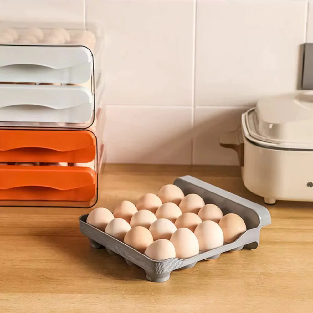 Camada dupla de armazenamento, pode armazenar 16 ovos por camada, promovendo economia de espaço.