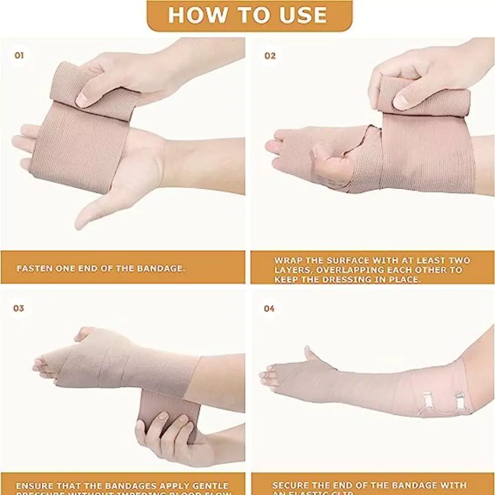 Contém 3 bandagens elásticas com clipes para segurar.