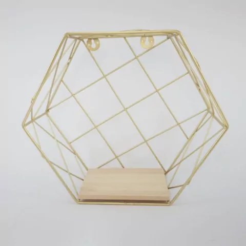 PRATELEIRA DECORATIVA - Produzido em metal e madeira com design moderno e de fácil instalação, serve para organização de vasos, pequenos objetos decorativos, otimizando o espaço das paredes. As criativas prateleiras hexagonais servem como organizadores e ao mesmo tempo decoram o ambiente com um design moderno. Os modelos de metal aramados anti ferrugem são leves e resistentes, aperfeiçoando o espaço útil e possibilitando o uso em diversas situações. O produto vai pronto para ser pendurado na parede. Medidas: 10x25,5x29cm.