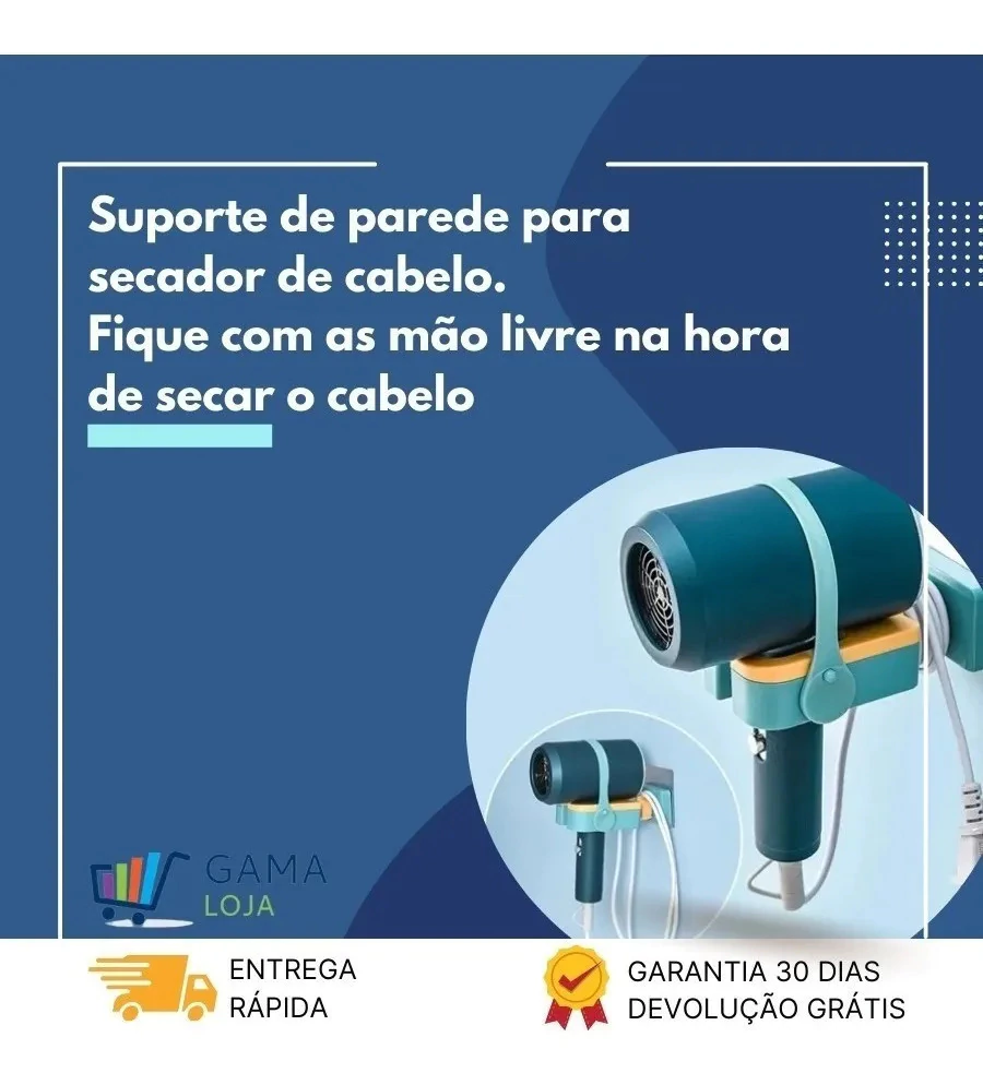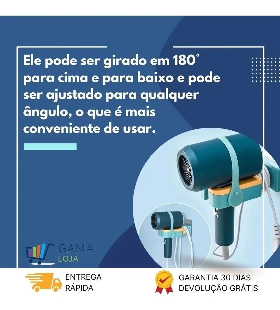 Com rotação de 180° para melhor uso do aparelho sem precisar ficar segurando. Com uma fita de fixação de gel de sílica macia e elástica para proteção contra quedas do secador.