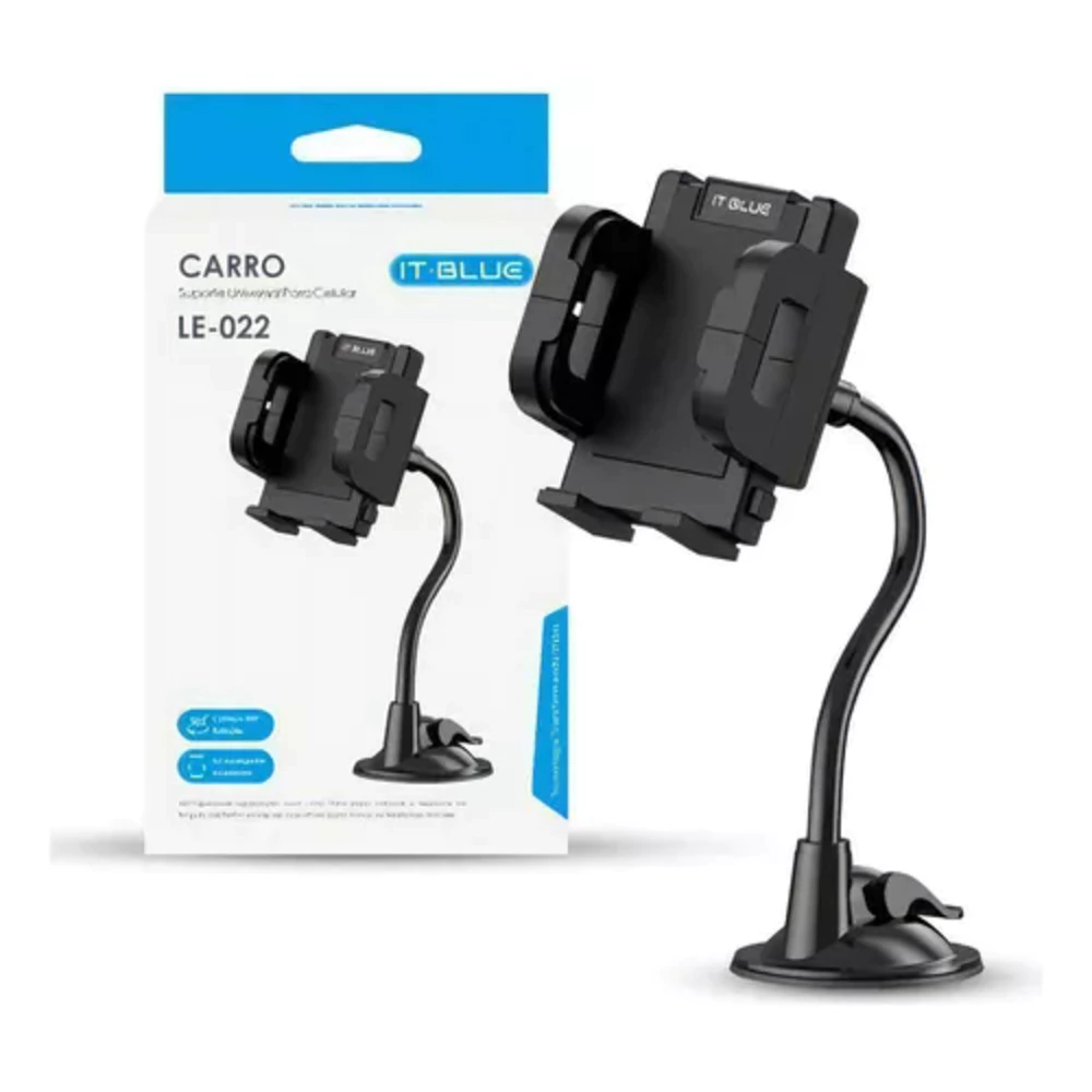 Este suporte de celular ou GPS para carro da marca It-Blue é perfeito para quem precisa de um acessório prático e funcional. Este suporte veicular possui um sistema de fixação por sucção, que adere perfeitamente em superfícies lisas como o vidro, tornando-o ideal para ser montado no pára-brisas do seu veículo.