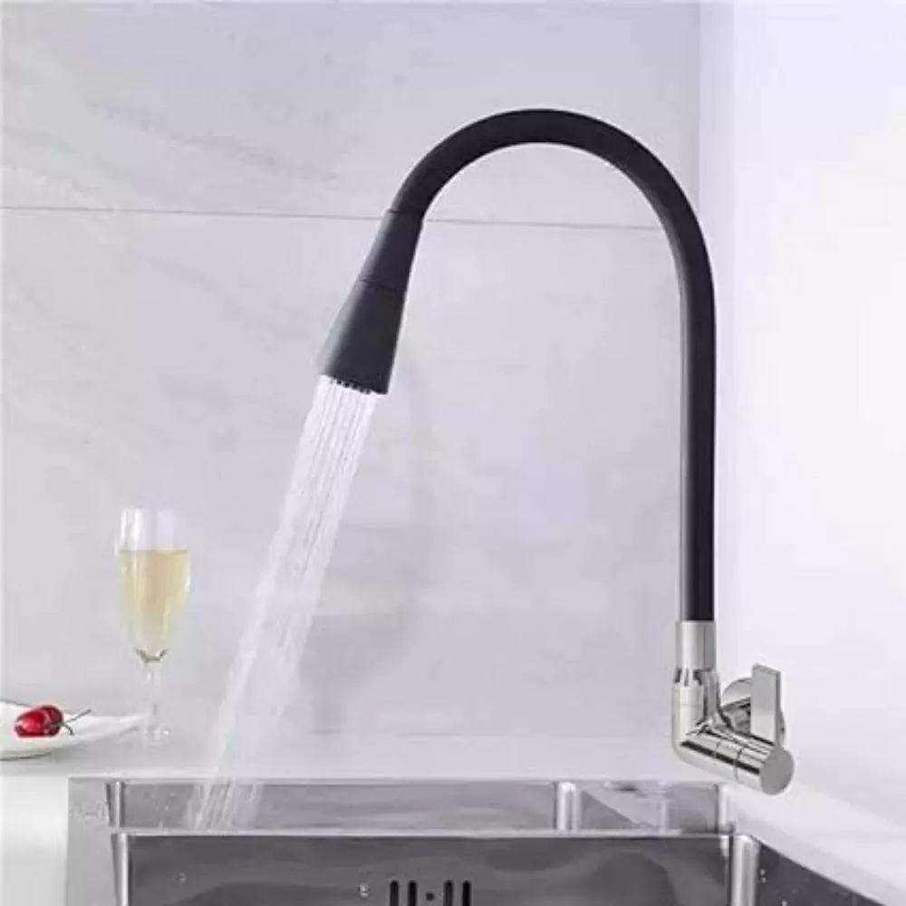 Com tubo flexível para parede é uma excelente opção para cozinhas com cubas duplas.