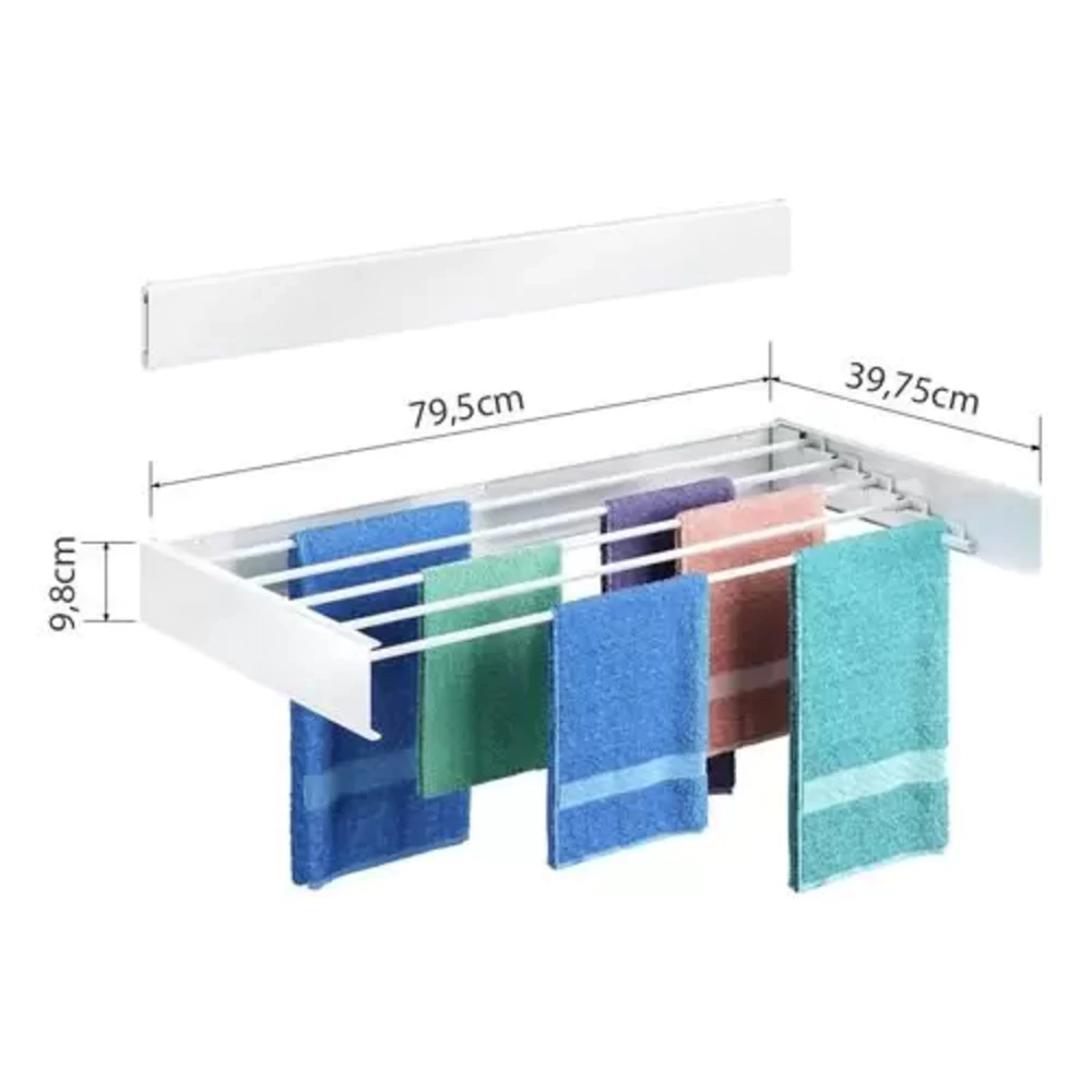 Dimensões: Com 80cm de comprimento, oferece espaço suficiente para pendurar roupas e facilitar a secagem.
