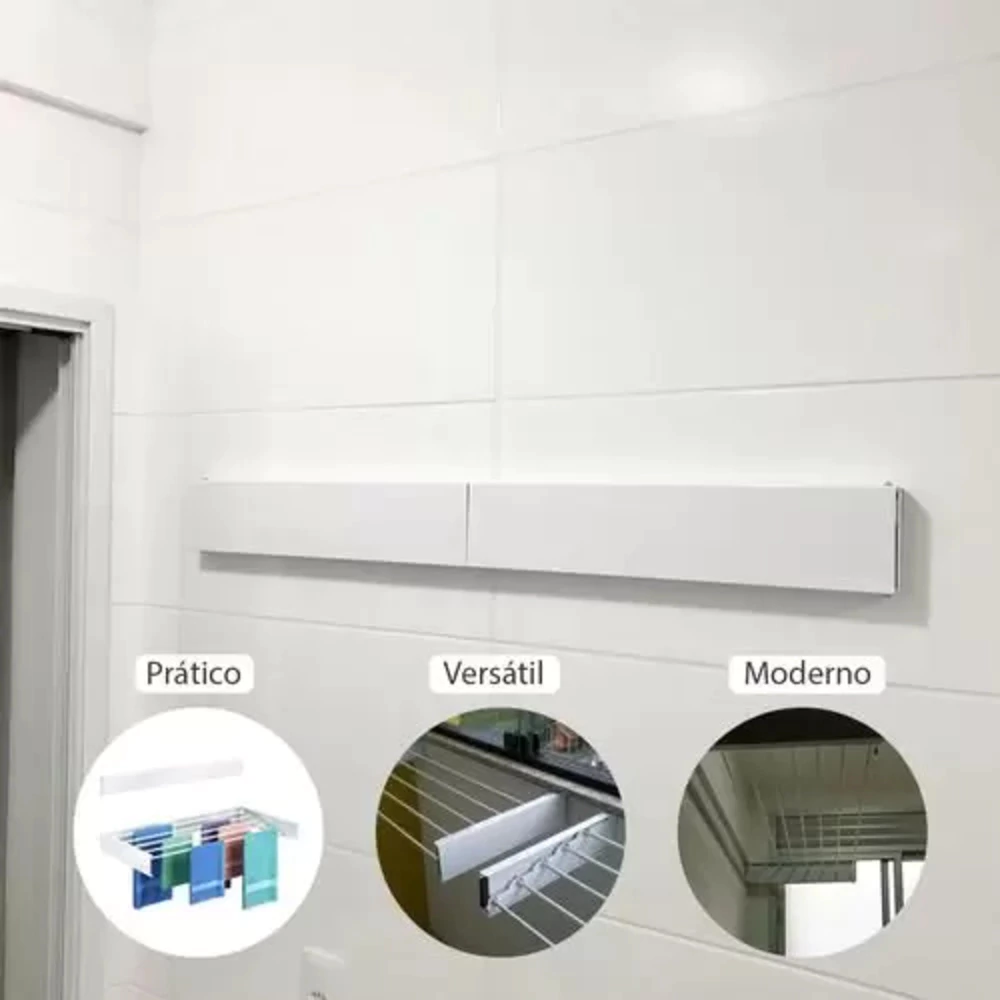 Versatilidade: Pode ser instalado em áreas internas ou externas da casa, oferecendo praticidade para secagem de roupas em qualquer ambiente.